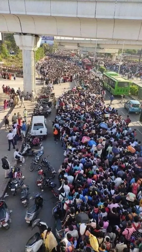 ด้วยไม่มีระบบขนส่งสาธารณะ คนงาน และครอบครัว นับพันคน จึงเริ่มพากันเดินเท้าไปตามถนนบนทางหลวง เกิดเป็นภาพของการชุมนุมขนาดใหญ่ กลายเป็นสถานการณ์ที่ทำให้คนเหล่านี้เสี่ยงต่อการติดเชื้อพร้อมกัน เป็นจำนวนมาก