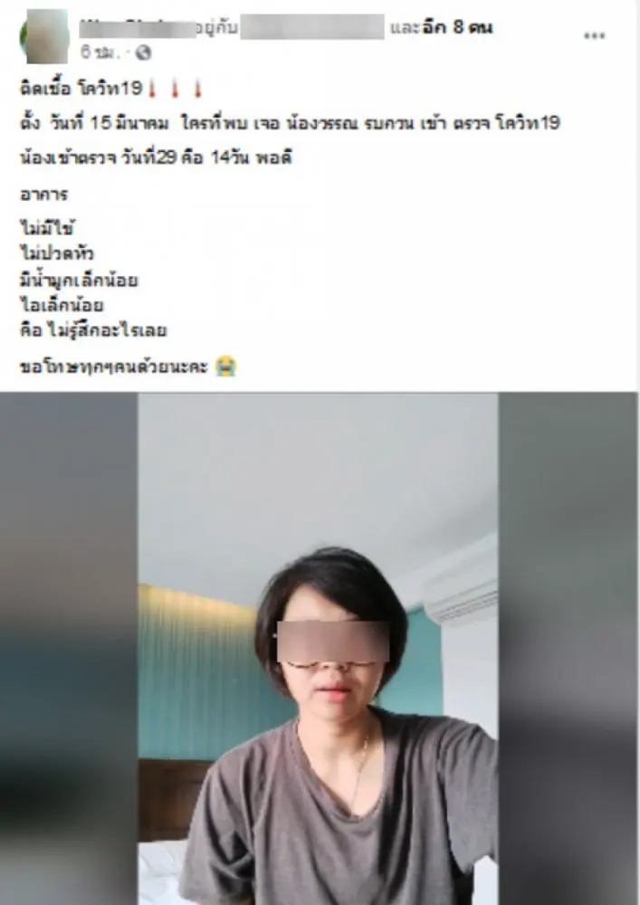 สาวอัดคลิป ร้องไห้ทั้งน้ำตา สารภาพติดเชื้อcovid-19 ไม่มีอาการใดๆก่อนหน้า ขอโทษทำให้คนอื่นเดือดร้อน