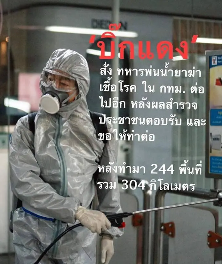 ประชาชน ร้องขอ!! “บิ๊กแดง” สั่งทหารพ่นน้ำยาฆ่าเชื้อโรคใน กทม. ต่อ หลังผลสำรวจ ประชาชนตอบรับ