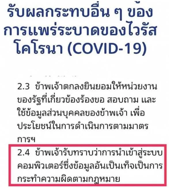 โดยเกณฑ์การคัดกรองผู้ที่มีสิทธิรับเงินเยียวยานั้น จะต้องเป็นไปตามข้อตกลง หากใส่ข้อมูลที่เป็นเท็จหรือบบิดเบือนอาจจะมีโทษทางกฏหมาย อันนี้ก่อนลงทะเบียนยินยอมจะมีให้อ่านอย่างชัดเจน