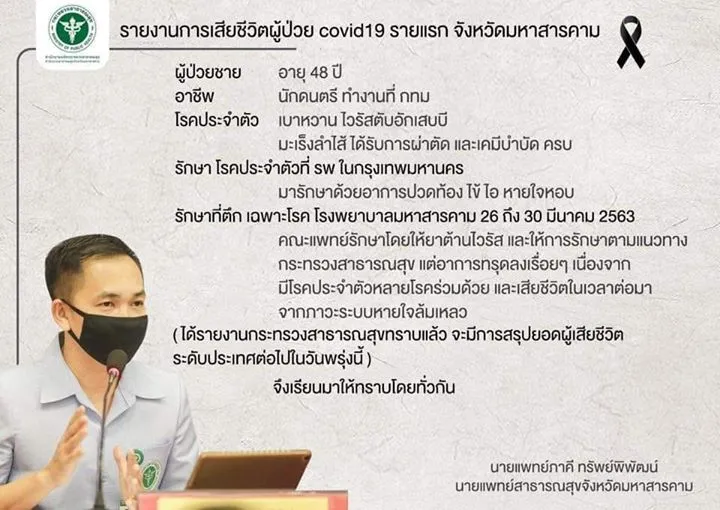 31 มี.ค. 2563 ผู้ป่วยโควิดชายวัย 48 ปี เป็นนักดนตรี เสียชีวิต รายที่ 10 ของไทย