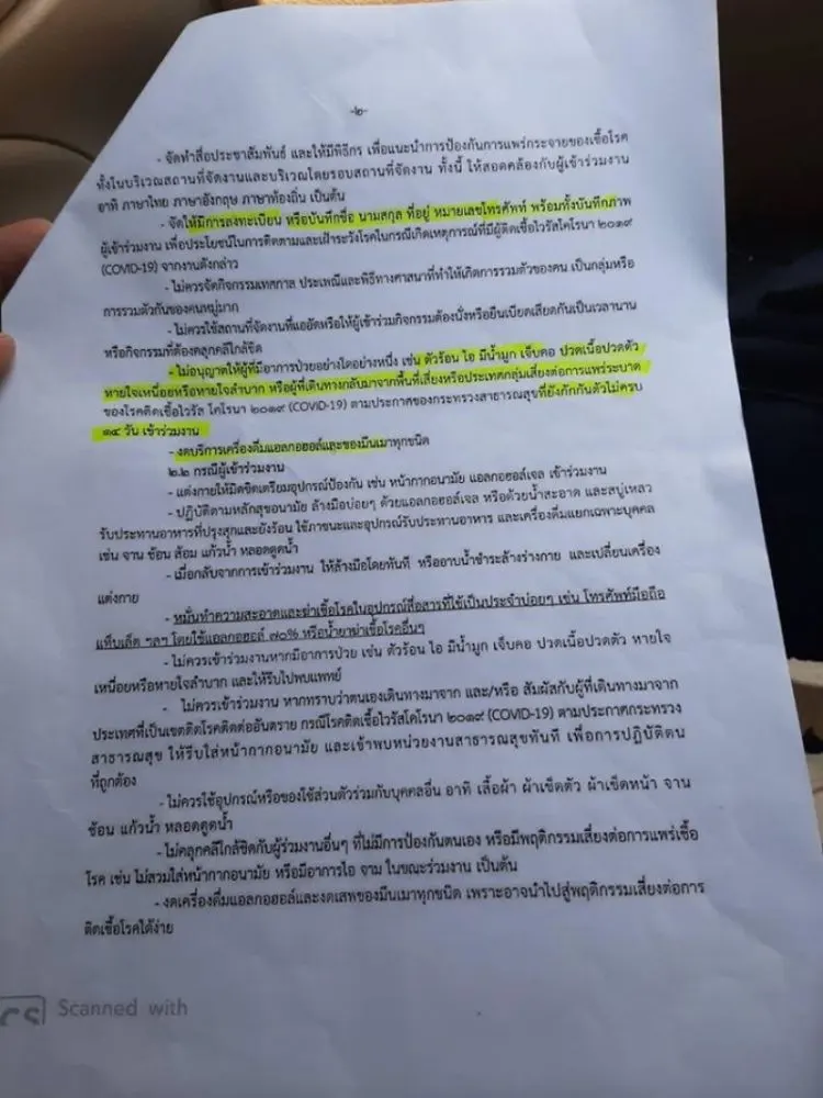 และยังมีคนที่เดินทางมาจากต่างจังหวัดอีกหลายคน ภายในงานไม่ได้จัดงานเป็นไปตามมาตรการป้องกันและความคุมโรคติดเชื้อโควิดของประกาศจังหวัด ซึ่งคนที่มาร่วมงานก็เยอะมาก