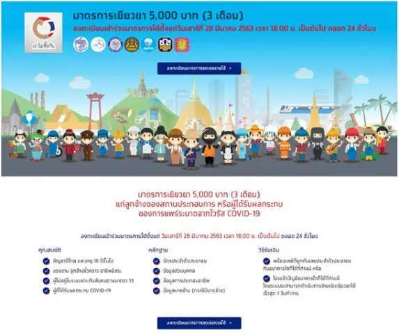 จากกรณีมีผู้ที่ได้รับผลกระทบจากวิกฤตcovid 19เป็นจำนวนมาก ทำให้รัฐบาลออกมาตรการเยียวยา แรงงาน ลูกจ้างชั่วคราว และอาชีพอิสระ ด้วยการสนับสนุนเงิน 5000 บาท 3 เดือน ซึ่งจะเปิดให้ลงทะเบียนผ่าน เว็บไซต์เราไม่ทิ้งกัน
