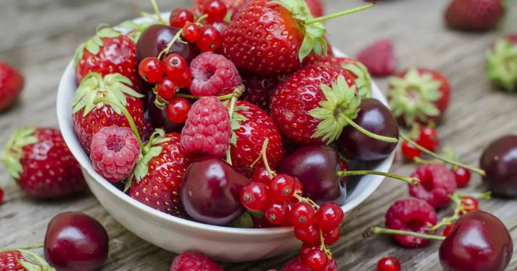 ผักผลไม้ที่มีสีแดงมีสารสำคัญ คือ ไลโคปีน (Lycopene) เบตาไซซีน (Betacycin) เควอซิทิน (Quercetin) เฮสเพอริดิน (Hesperidin) และสารแอนโทไซยานิน (Anthocyanin)ฯลฯ ตัวอย่างผลไม้และผักสีแดง เช่น สตรอว์เบอร์รี่ เชอรี่ แครนเบอร์รี่ ราสเบอร์รี่ ทับทิม องุ่นแดง แตงโม ดอกกระเจี๊ยบ มะเขือเทศ บีทรูท พริกแดง หอมแดง