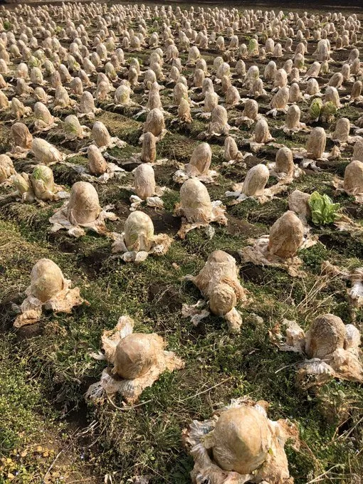 สุดท้ายก็มีชาวเน็ตอีกคนออกมาเฉลยว่า ไม่ใช่หรอก ที่จริงแล้วที่มันเป็นก้อนๆ ที่วางเรียงรายนี้เป็น“ผักกาดขาว” ที่มันกลายเป็นแบบนี้ก็เพราะว่า ฤดูหนาวในญี่ปุ่นหนาวมาก ดังนั้นใบของผักกาดขาวชั้นด้านนอกจึงแข็งและแห้งเหี่ยวไปจนกลายเป็นสีน้ำตาลคล้ายสีของดินนั้นเอง