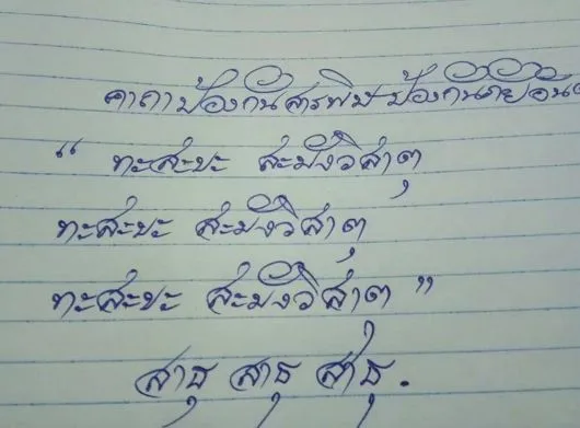 คาถาป้องกันสารพิษ ป้องกันภัยอันตรายทุกอย่าง “ทะสะขะ สะมังวิสาตุ ทะสะขะ สะมังวิสาตุ ทะสะขะ สมังวิสาตุ”
