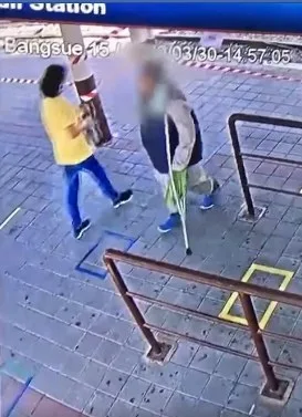 ภาพจากกล้องวงจรปิดเมื่อวันที่ 30 มี.ค. เวลาประมาณ 14.00 น. ผู้เสียชีวิตนั่งแท็กซี่สีเขียวเหลือง ไม่ทราบทะเบียน ขับถอยหลังเข้ามาจอหน้าทางเข้าสถานี โดยได้นั่งรถมาคู่คนขับ และทางวิน จยย.ที่อยู่หน้าทางเข้า ไปช่วยลุงถือของลงมาจากรถแท็กซี่ จากนั้นพาไปเข้าห้องน้ำของสถานี ก่อนที่จะออกมาแล้วไปนั่งที่ม้านั่งฝั่งตรงข้ามที่ขายตั๋ว
