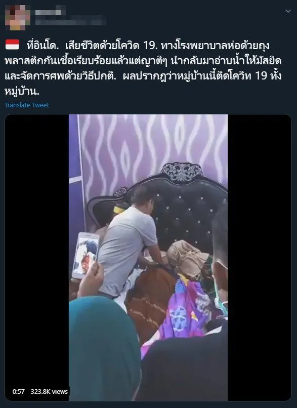 ล่าสุดในโลกออนไลน์โผู้ใช้ทวิตเตอร์รายหนึ่งได้โพสต์คลิปวิดีโอพิธีกรรมทางศาสนาของชาวอินโดนีเซีย ที่กำลังทำพิธีกรรมกับศพของผู้เสียชีวิตจากโรคโควิด
