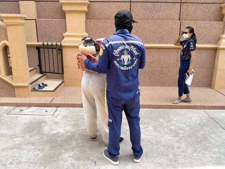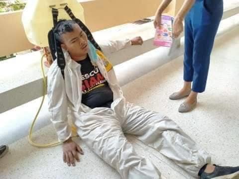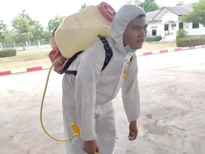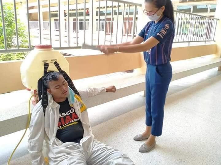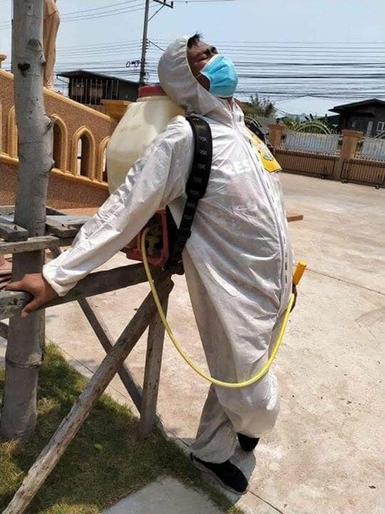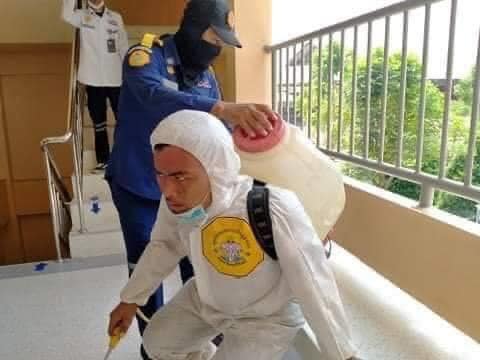 เงินเดือนไม่มี ทำด้วยหัวใจล้วนๆ กู้ภัยจิตอาสา แบกถังน้ำยาบนหลัง 40 ลิตร แบกขึ้นลงตึก 4 ชั้น ตึกแล้วตึกเล่า