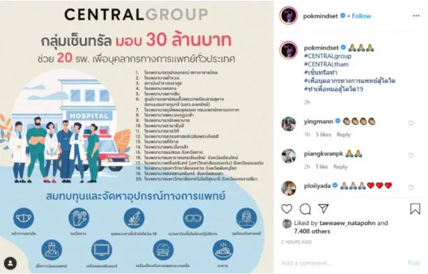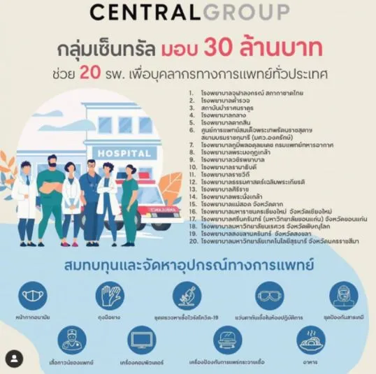 กลุ่มเซ็นทรัลกรุ๊ป ได้มอบเงิน 30 ล้านบาท ให้กับ 20 โรงบาลทั่วประเทศ
