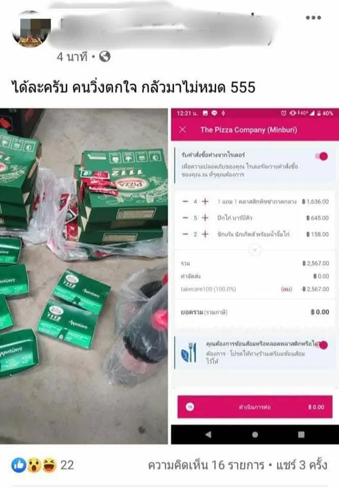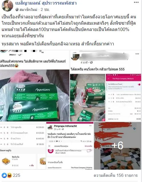 ความผิดใคร ? คนแห่ซื้อพิซซ่า หลังเกิดบัค ใส่ส่วนลด 100 บาท แต่กลายเป็นส่วนลด 100 %