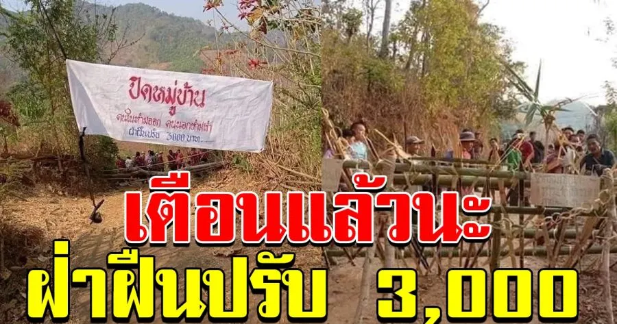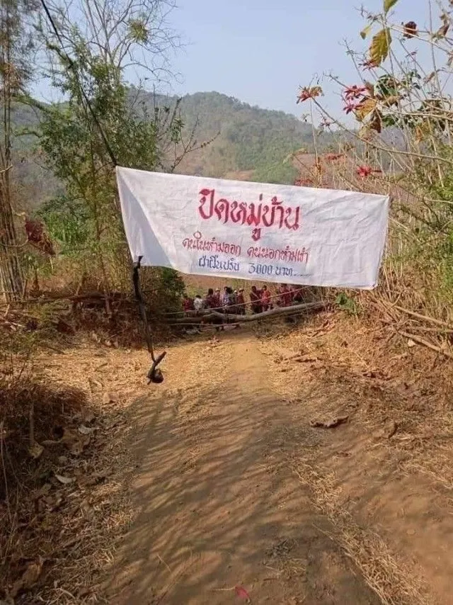 ชาวบ้านขึ้นป้าย คนในห้ามออก ปิดหมู่บ้าน