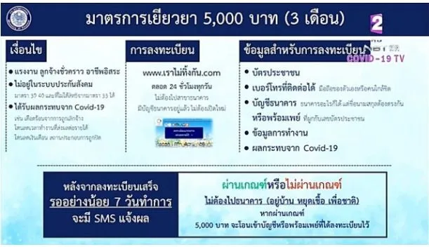 เมื่อวันที่ 2 เมษายน 2563 นายลวรณ แสงสนิท ผู้อำนวยการสำนักงานเศรษฐกิจการคลัง ในฐานะโฆษกกระทรวงการคลัง เปิดเผยถึงมาตรการเยียวยาแรงงาน ลูกจ้าง หรือผู้ประกอบอาชีพอิสระ ไม่ได้อยู่ในระบบประกันสังคม ที่ได้รับผลกระทบจากสถานการณ์ COVID-19 กับการมอบเงินช่วยเหลือ 3 เดือน คนละ 5000 บาท ที่เปิดให้ลงทะเบียนแล้วผ่านเว็บไซต์ www เราไม่ทิ้งกัน comผ่านรายการพิเศษศูนย์บริหารสถานการณ์โควิด 19 ศบค.