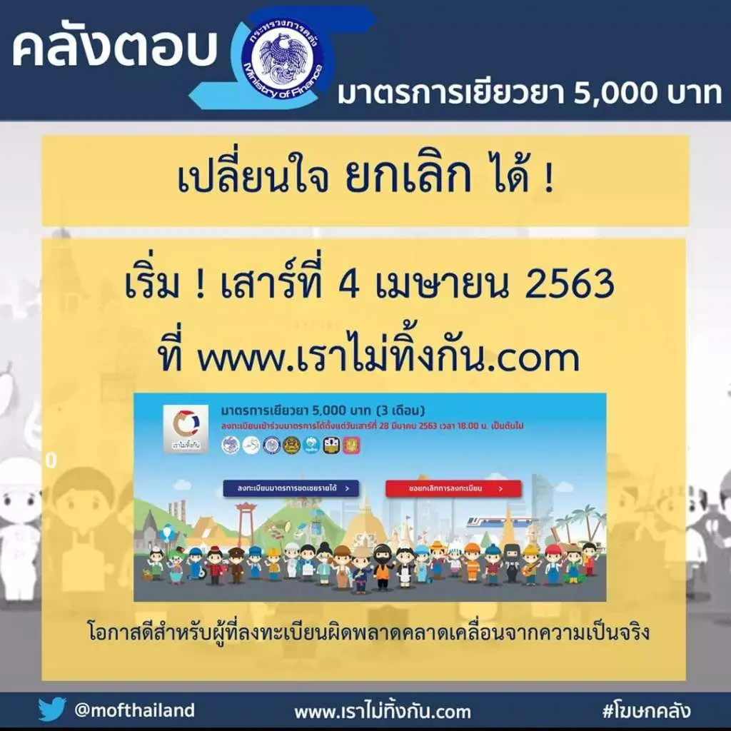ระบบเปิดโอกาสให้ยกเลิกเงินเยียวยา 5,000 บาทได้ วันที่ 4 เม.ย. 2563