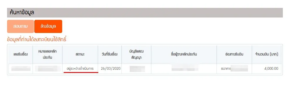 จากนั้นระบบจะแสดงข้อมูลที่ได้ลงทะเบียนไว้ โดยดูในช่องสถานะได้ว่าตอนนี้อยู่ในขั้นตอนใด ท่านอาจอยู่ในขึ้นตอนต่างๆดังนี้