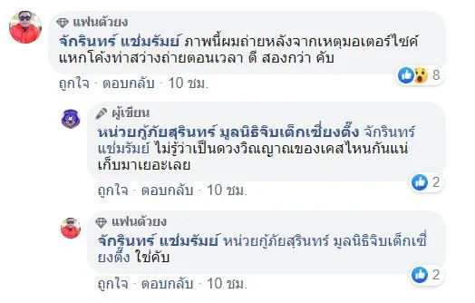 โดยผู้ถ่ายภาพนี้คือคุณจักรินทร์ แช่มรัมย์ เขาได้เข้ามาตอบข้อความว่า ภาพนี้ผมถ่ายหลังจากเหตุมอเตอร์ไซค์แหกโค้งท่าสว่างถ่ายตอนเวลา ตี สองกว่า ครับ