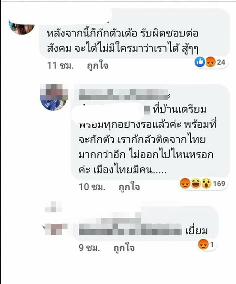 โดยทางเพจได้ระบุข้อความว่า “อีกหนึ่งผู้ที่หนีการกักตัว เธอบอก กลัวเชื้อโรคที่ไทยมาก นึกถึงเพลง กลับมาทำไม ของ หม่ำ จ๊กมก เลยค่ะ” ทั้งนี้ หลังเรื่องราวดังกล่าวถูกแพร่ออกไปได้มีชาวเน็ตเข้ามาแสดงความคิดเห็น วิพากษ์วิจารณ์ถึงสาวไทยรายดังกล่าว ที่อ้างว่ากลัวเชื้อโรคในประเทศไทยมากกว่าแล้วจะกลับมาทำไม