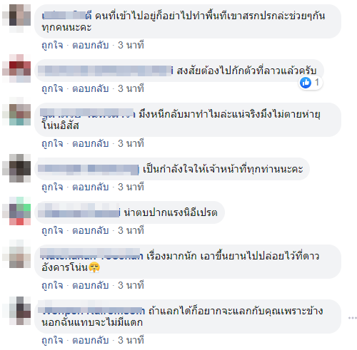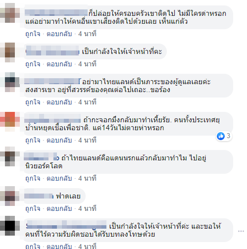 หลังจากนั้นก็มีชาวเน็ตจำนวนมากเข้ามาแสดงความคิดเห็นพร้อมกับให้กำลังใจเจ้าหน้าที่ทุกท่านที่ยอมลำบากและเสี่ยงติดเชื้อโควิด-19 เพื่อให้คนอื่นปลอดภัยที่สุด นอกจากนี้ยังวอนขอให้ผู้ที่หลบหลีกการกักตัวกลับมาโดยเร็ว เพื่อไม่ให้หลายฝ่ายต้องหนักใจไปมากกว่านี้