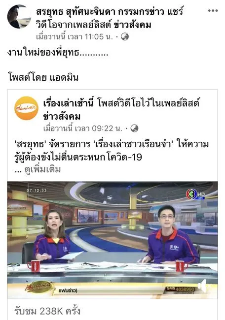 เเละล่าสุด ทางด้าน...ของ สรยุทธ นั้นก็เปิดหน้าที่ใหม่ของ สรยุทธ หลังจำคุก นั้นก็ไม่ได้อยู่เฉยๆ เเต่ต้องทำหน้าที่ผู้ประกาศข่าว เรื่องเล่าชาวเรือนจำ อีกครั้ง เพื่อให้ความรู้นักโทษ ผู้ต้องขัง เพื่อไม่ให้ตระหนกในโรคระบาดโควิด-19 นั่นเอง