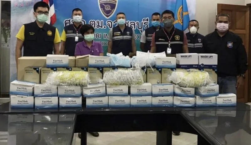 เมื่อวันที่ 4 เมษายน ที่สำนักงานตรวจคนเข้าเมืองจังหวัดชลบุรี ร่วมกับตำรวจท่องเที่ยวเมืองพัทยา, ฝ่ายปกครองอำเภอบางละมุง, พาณิชย์จังหวัดชลบุรี และ กอ.รมน.จังหวัดชลบุรี ร่วมกันจับกุมนายเหอ ชุนหยู อายุ 38 ปี สัญชาติจีน หลังสืบทราบว่ามีการกักตุนหน้ากากอนามัยไว้ในครอบครองเกินปริมาณที่กำหนด จึงเข้าทำการตรวจค้นพบของกลางเป็นหน้ากากอนามัยยี่ห้อและรุ่นต่างๆ รวมจำนวนกว่า 62,400 ชิ้น ได้ที่คอนโดมิเนียมแห่งหนึ่ง ย่านถนนชายหาดจอมเทียน ม.12 ต.หนองปรือ อ.บางละมุง จ.ชลบุรี จึงควบคุมตัวมาทำการสอบสวน