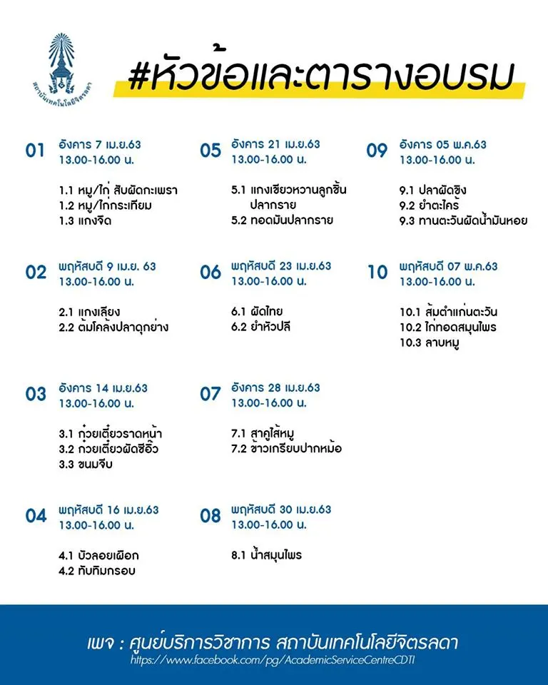 สถาบันเทคโนโลยีจิตรลดา สอนทำอาหารออนไลน์ฟรี