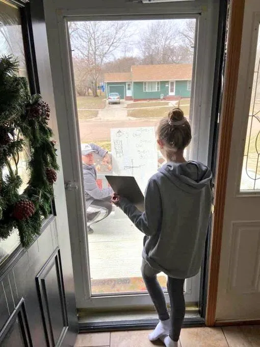 นร.อีเมลไปถามครูคณิตศาสตร์เพราะไม่เข้าใจเนื้อหา ครูพยายามอธิบายแต่รู้ว่าศิษย์ยังงงๆ เลยหอบอุปกรณ์การสอนมาตั้งที่หน้าประตูบ้านของนร. แล้วอธิบายจนเข้าใจกระจ่าง..ในช่วงเวลาที่ต้องเว้นระยะห่างทางสังคม ประกบมือ