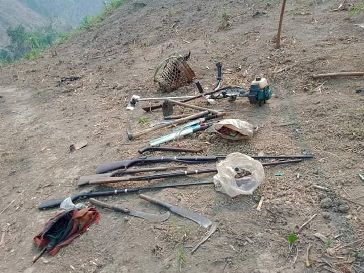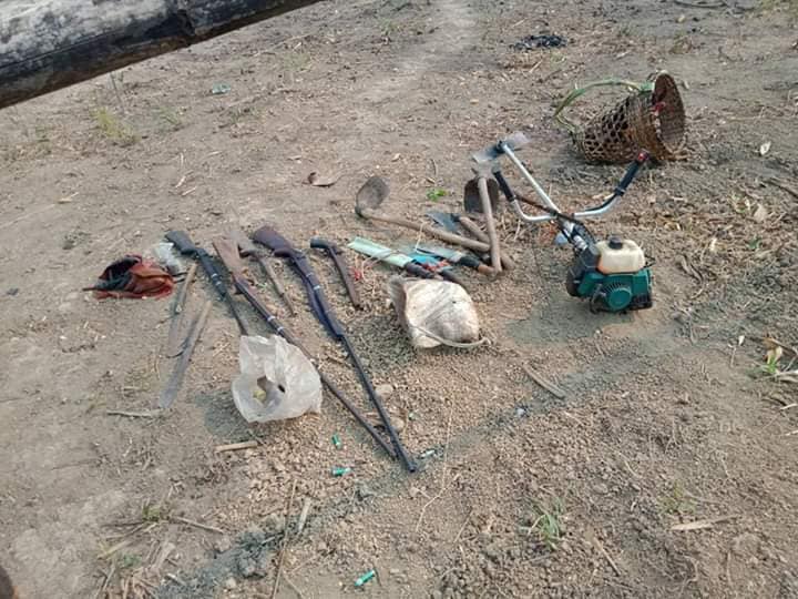เจ้าหน้าที่ตากตรวจยึดพื้นที่ป่าถูกบุกรุก แผ้วถางป่าและจับอาวุธปืนไทยประดิษฐ์ พร้อมอุปกรณ์บุกรุกป่า เครื่องมือตัดไม้ มีด จอบ เสียม