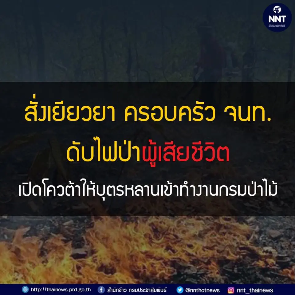 เปิดโควต้า ให้บุตรหลานครอบครัวอาสา จนท.ดับไฟป่าผู้เสียชีวิต เข้าทำงานกรมอุทยานฯเเละกรมป่าไม้