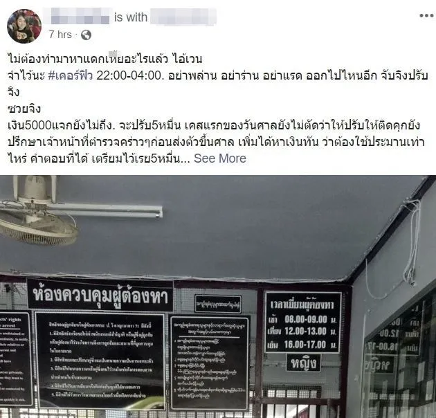 โดยทางผู้ใช้เฟซบุ๊คสาวรายหนึ่ง ร่ายยาวว่า…ไม่ต้องทำมาหาแดกเ...้*อะไรแล้ว ไอ้เวร จำไว้นะ เคอร์ฟิว 22:00-04:00. อย่าพล่าน อย่าร่าน อย่าแรด ออกไปไหนอีก จับจิงปรับจิง ซวยจิง เงิน5000แจกยังไม่ถึง จะปรับ5หมื่น เคสแรกของวันศาลยังไม่ตัดว่าให้ปรับให้ติดคุกยัง ปรึกษาเจ้าหน้าที่ตำรวจคร่าวๆก่อนส่งตัวขึ้นศาล เพิ่มได้หาเงินทัน ว่าต้องใช้ประมานเท่าไหร่ คำตอบที่ได้ เตรียมไว้เลย5หมื่น