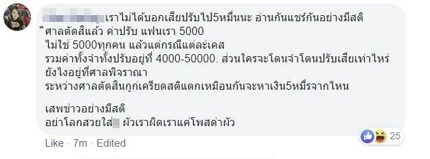พร้อมกันนี้ตัวเธอยังได้อธิบายเพิ่มเติมว่า เราไม่ได้บอกเสียปรับไป5หมื่นนะ อ่านกันแชร์กันอย่างมีสติ ศาลตัดสินแล้ว ค่าปรับ แฟนเรา 5000 ไม่ใช่ 5000ทุกคน แล้วแต่กรณีแต่ละเคส รวมค่าทั้งจำทั้งปรับอยู่ที่ 4000-50000. ส่วนใครจะโดนจำโดนปรับเสียเท่าไหร่ยังไงอยู่ที่ศาลพิจราณา ระหว่างศาลตัดสินGUเครียดสติแตกเหมิอนกัน จะหาเงิน5หมื่นจากไหน เสพข่าวอย่างมีสติ อย่าโลกสวยใส่GU ผัวเราผิดเราแค่โพสต์ด่าผัว