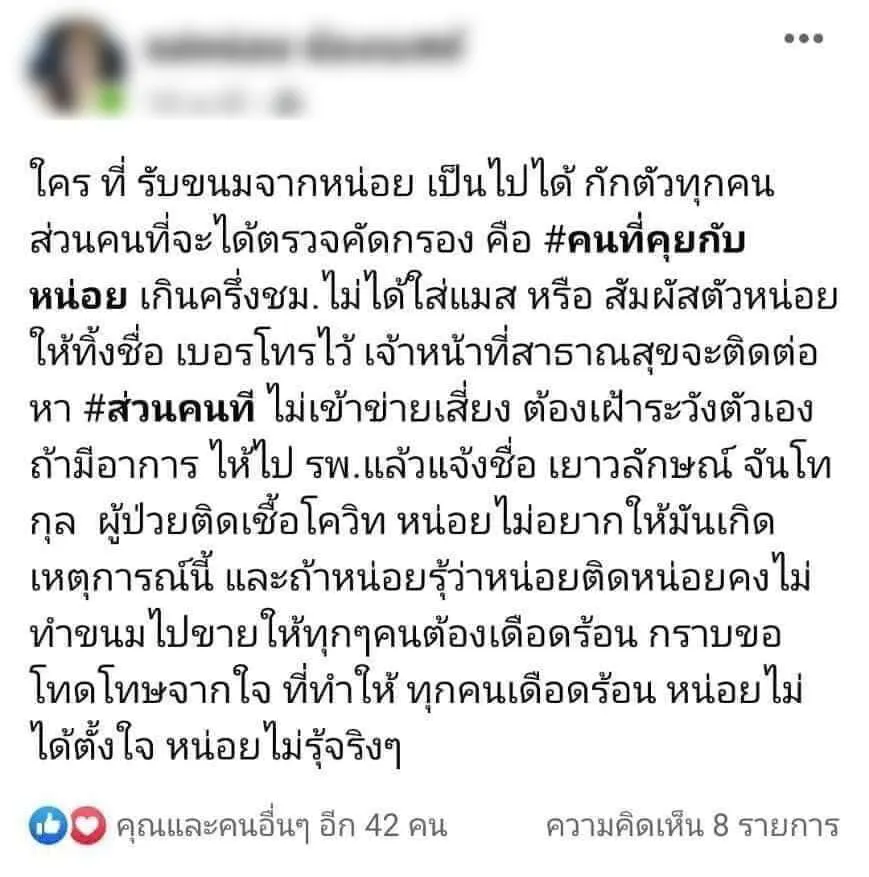 แม่ค้าประกาศ ใครได้รับขนมจากตน ให้แจ้งตัวด่วน หลังเจ้าตัวติดเชื้อโควิด-19