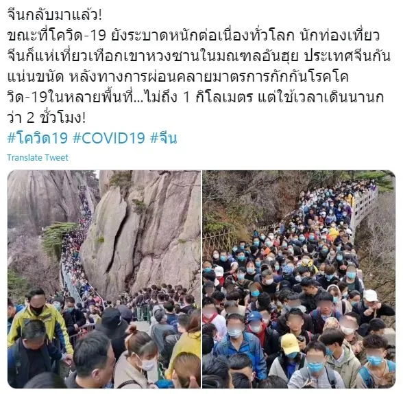 กลายเป็นเหตุการณ์ที่ถูกผู้คนทั่วโลกเข้ามาวิจารณ์กันอย่างดุเดือด เมื่อมีการเปิดเผยภาพฝูงชนนักท่องเที่ยวจีนแห่เดินทางไปท่องเที่ยวเทือกเขาหวงซาน ในมณฑลอันฮุย กันอย่างเนืองแน่น หลังทางการจีนเริ่มผ่อนคลายมาตรการกักกันโรค โควิด-19 ในหลายพื้นที่
