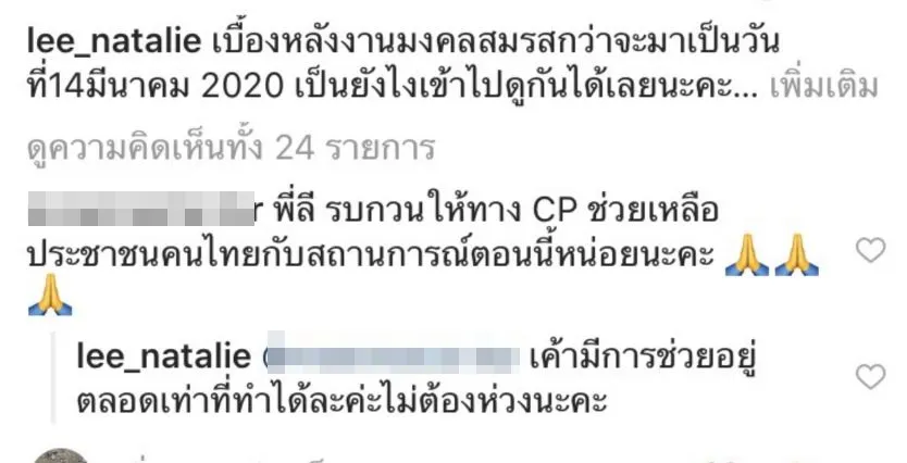 ซึ่งก่อนหน้านี้ก็เกิดดราม่าขึ้นเล็กๆเมื่อทางด้าน นาตาลี เจียรวนนท์ ทายาทCP ได้ออกมาโพสต์รูปภาพ แต่ได้มีชาวเน็ตรายหนึ่งเข้ามาคอมเมนต์กลางอินสตาแกรมของ สาวนาตาลี เอาไว้ว่า พี่ลีรบกวนให้ทาง CP ช่วยเหลือประชาชนคนไทยกับสถานการณ์ตอนนี้หน่อยนะคะ โดยทางด้าน สาวนาตาลี ได้ตอบกลับว่า เชามีการช่วยอยู่ตลอดเท่าที่ทำได้ละค่ะไม่ต้องห่วงนะคะ