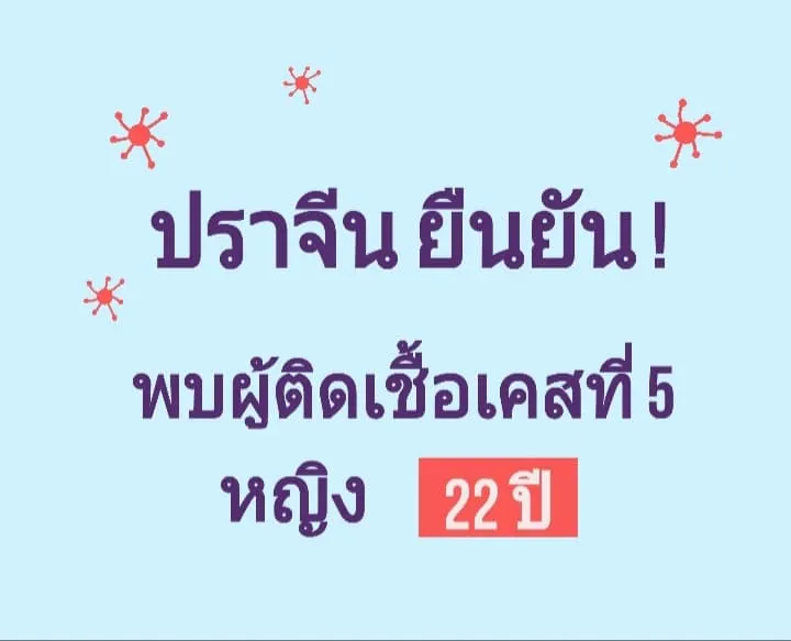 #ปราจีน - ยืนยันผลแล็บ พบผู้ติดเชื้อเคสที่ 5