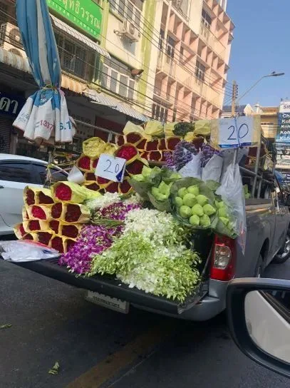 ปากคลองขายไม่ได้เลยลูกก ลุงต้องตระเวนขับเล(หลัง)ไปเรื่อยๆ” แววตาลุงดูเหนื่อยและล้าที่ให้คำตอบเรามา กับคุณป้าที่เหมือนใช้แรงเกือบหมดแล้วจนเหลือพลังงานน้อยมากๆ งั้นเอากุหลาบผสมๆกันมาให้หนูสิบกำค่ะ