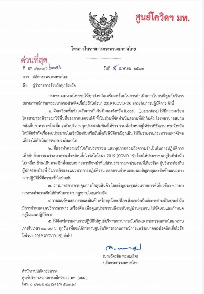 มหาดไทย ย้ำ ส่งหนังสือถึง ผวจ.ไม่เกี่ยวประกาศเคอร์ฟิว 24 ชม.