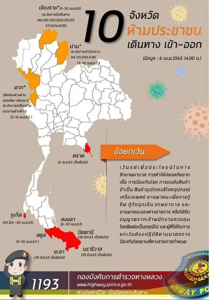 ห้าม! เข้าออก 10 จังหวัด เพื่อควบคุมป้องกันโรค