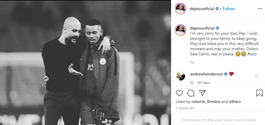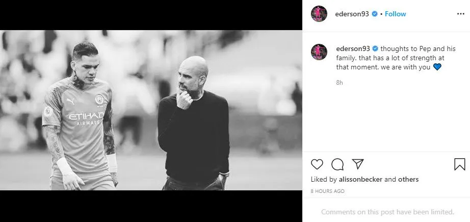 อย่างไรก็ตาม ลุกทีมของเป๊ป ในทัพเรือใบเองก็ได้โพสต์ภาพในอินสตราแกรมเพื่อเป็นกำลังใจให้กับกุนซือใหญ่ของตัวเองอีกด้วย อาทิ เควิน เดอ บรอยน์ , กาเบรียล เชซุส , เอแดร์สัน โมราเอส และคนอื่นๆ อีกมากมาย