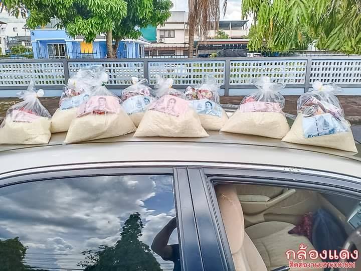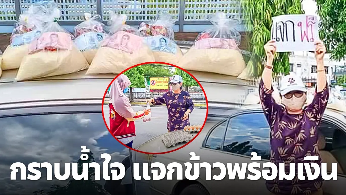 กราบน้ำใจ สาวใหญ่ขับรถนำอาหารแห้งมาแจกชาวบ้าน แถมในถุงยังใส่เงินให้ไปดำรงชีพ