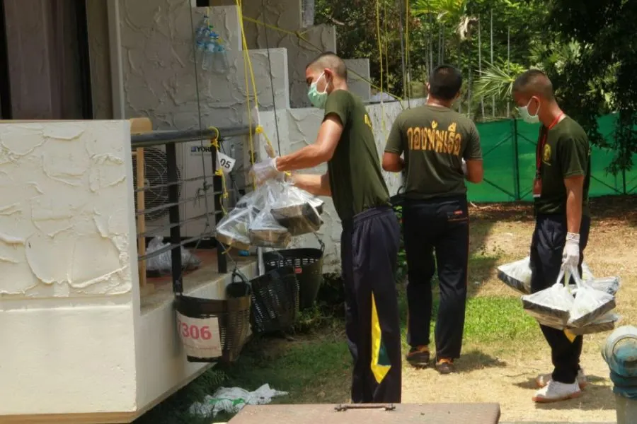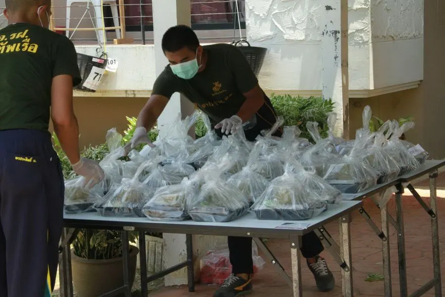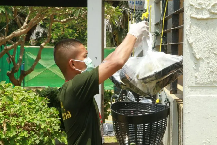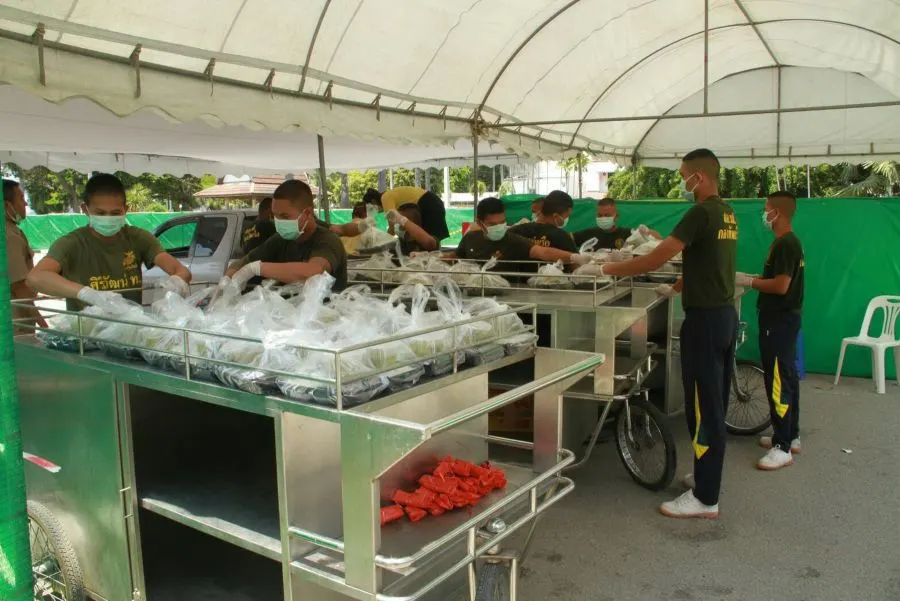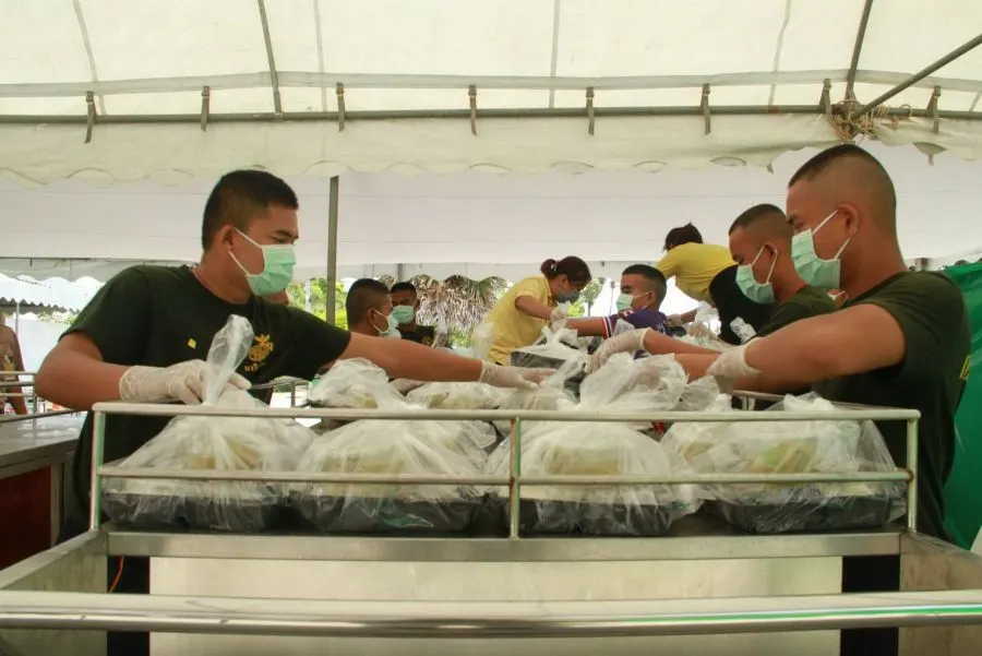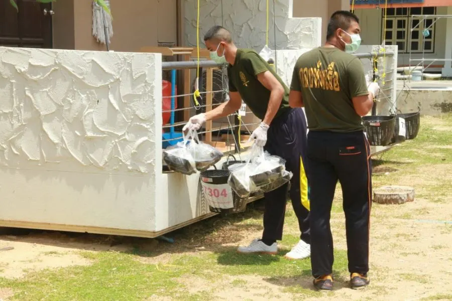 ภาพเบื้องหลังอาหารเย็นที่ส่งถึงมือคนไทยที่เดินทางกลับจากต่างประเทศ โดยทหารกำลังพลของกองทัพเรือได้ทำหน้าที่ลำเลียงอาหารของแต่ละมื้อ และของฝากจากญาติ รวมทั้งสิ่งของที่ผู้เข้าเฝ้าระวังอาการร้องขอมา