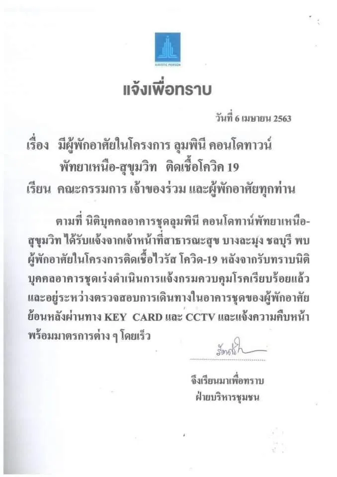 สืบเนื่องจากประเด็นดังกล่าวต้องบอกว่า ทำให้กิจการต่างๆ นั้นได้รับกระทบกันไปหมด ไม่เว้นแต่คอนโดชื่อดังอย่าง ลุมพินี คอนโดทาวน์ พักยาเหนือ สุขุมวิทได้ออกแภลงหลังจากที่มีผู้พักอาศัยนั้นได้มีการติดเชื้อโควิด-19 โดยระบุว่า