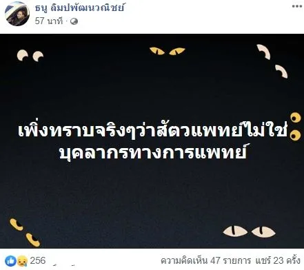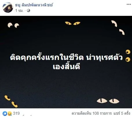 จากนั้นได้โพสต์อีกสองครั้งว่า “ติดคุกครั้งแรกในชีวิต น่าทุเรศตัวเองสิ้นดี” และ “เพิ่งทราบจริงๆว่าสัตวแพทย์ไม่ใช่บุคลากรทางการแพทย์”