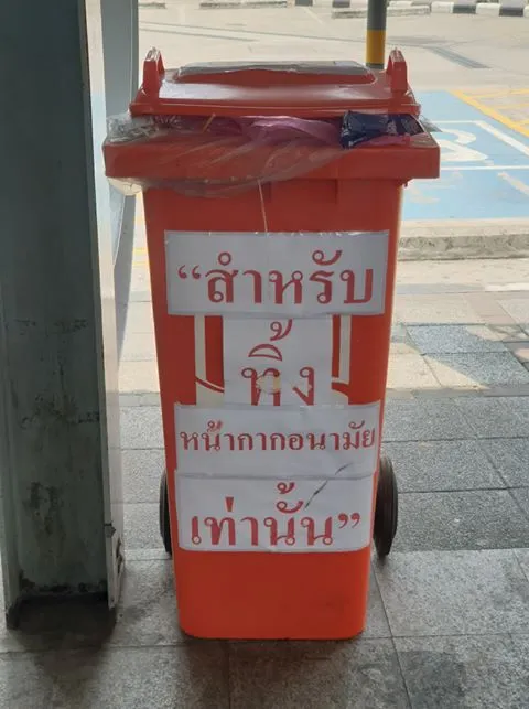 และนี่คือสิ่งที่เกิดขึ้นกับถัง “สำหรับทิ้งหน้ากากอนามัย เท่านั้น” @MRT Bangkok Metro สถานีเพชรบุรี
