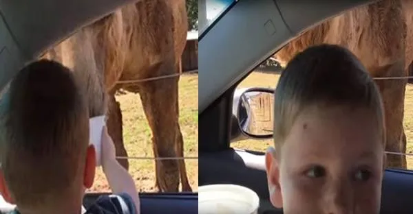 ทั้งนี้ วิดีดอดังกล่าวเผยให้เห็นภาพที่เด็กชาย 2 คน นั่งให้อาหารสัตว์ในสวนสัตว์ แต่เด็กชายคนที่นั่งด้านหลังกลับตกใจที่เจ้าลามะยื่นหัวเข้ามาในรถ
