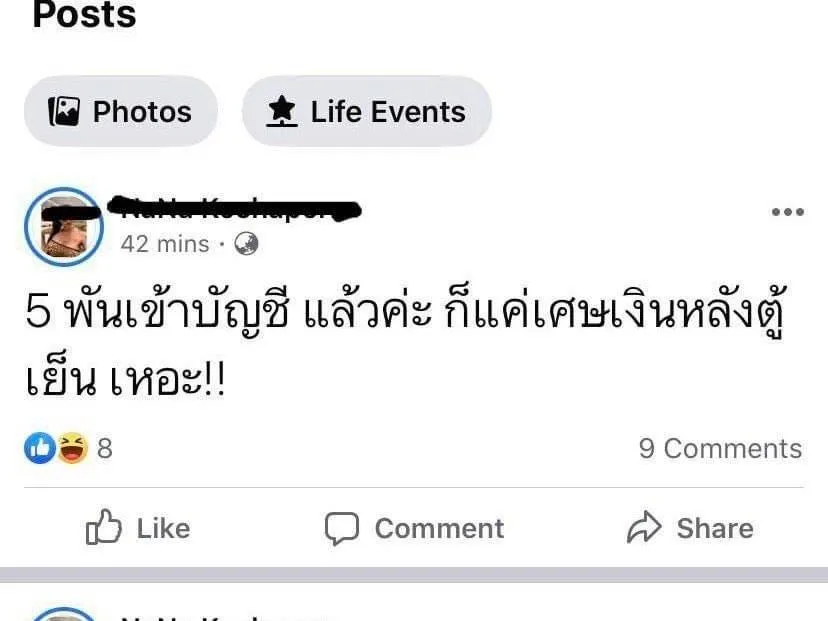 จากกรณีที่กำลังถูกวิพากษ์วิจารณ์สนั่นหลังมีผู้ใช้เฟซบุ๊กสาวรายหนึ่งออกมาโพสต์ข้อความผ่านเฟซบุ๊กว่าตัวเธอได้รับเงินเยียวยา 5,000 บาท แล้วแถมยังกล่าวว่าเงินนี่เป็นเพียงเศษ