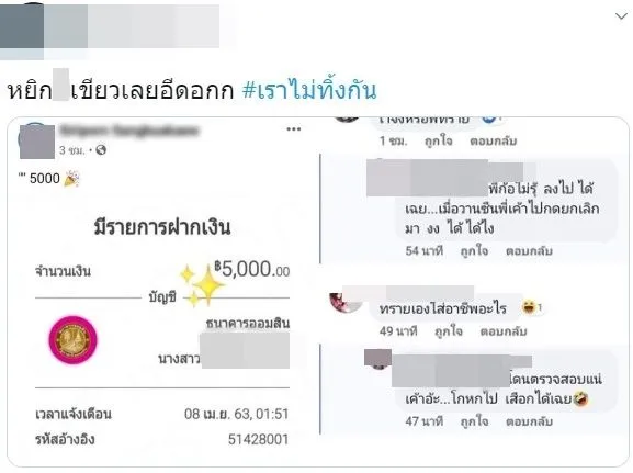 ล่าสุดพบว่าแฮชแท็ก #เราไม่ทิ้งกัน ก็มีชาวเน็ตอีกหลายหลายรายได้โพสต์รูปภาพว่าได้เงินเยียวยา 5 พัน บาท แถมตัวเองก็ไม่ได้เดือดร้อน โดยบางคนบอกว่าลงข้อมูลไปเล่นๆกลับได้เงินเฉย