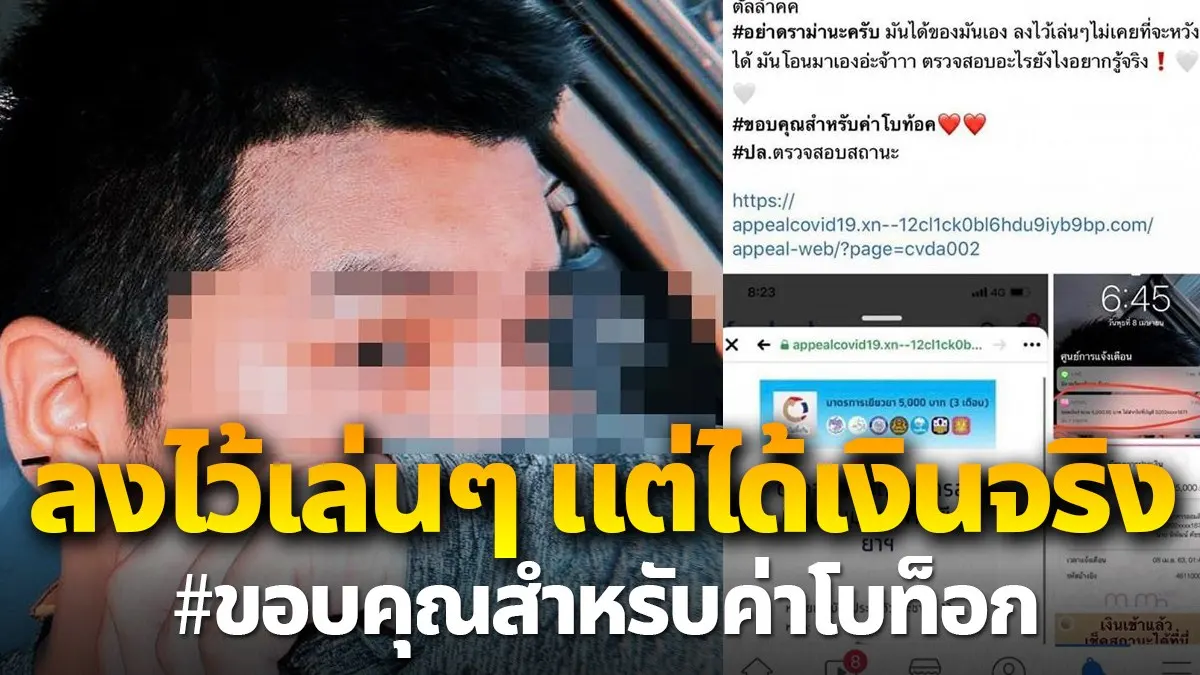หนุ่มโพสต์รักลุง ลงทะเบียนเล่นๆได้เงิน 5,000 บาท ลั่น ขอบคุณสำหรับค่าโบท็อก