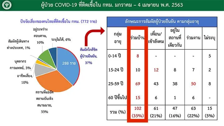 การวิเคราะห์ผู้ป่วยติดเชื้อโควิด-19 รายใหม่ของไทยในระยะหลัง พบติดเชื้อจากผู้ป่วยรายเดิมซึ่งเป็นคนร่วมบ้านเดียวกันเพิ่มขึ้นทั้งในกทม.และต่างจังหวัด (ดูรูป)