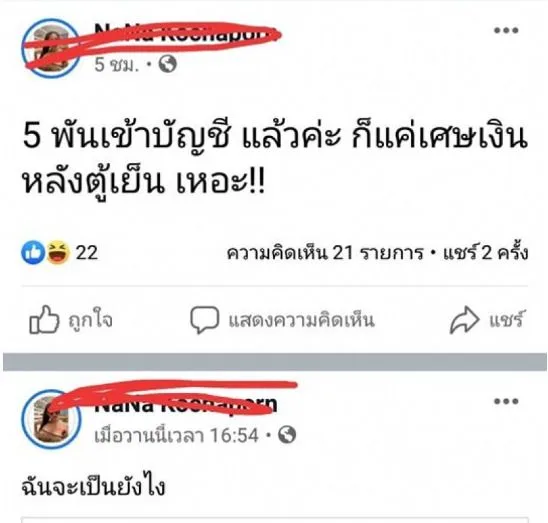 จากกรณีที่สาวกินหรู ใช้ชีวิตสุขสบาย ได้รับเงินเยียวยาผู้ได้รับผลกระทบโควิด-19 จากรัฐบาล 5,000 บาท โดยโพสต์ว่า เงิน 5000 แค่เศษเงินหลังตู้เย็น จนโดนโซเชียลจวกยับ ก่อนออกมาชี้แจงว่าแค่ประชดและรู้เท่าไม่ถึงการณ์