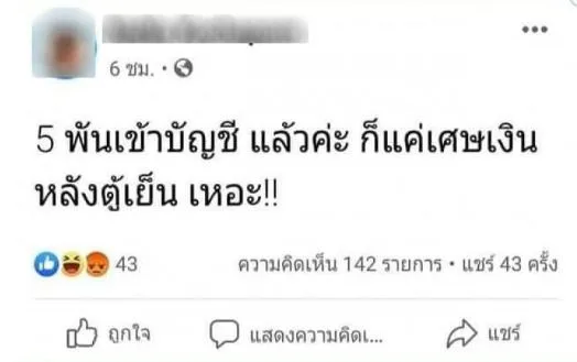 งานเข้า! เผยบทลงโทษ สาวโพสต์ได้เงิน 5000 บอกก็แค่เศษเงิน